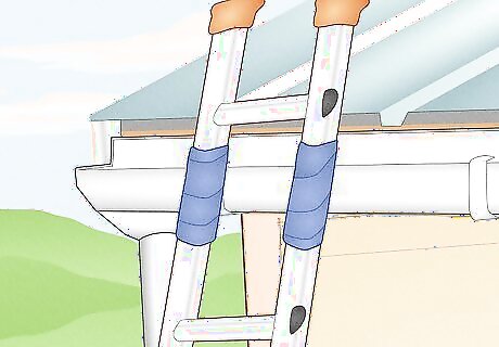 Use the denim to "scratch-proof" furniture and tools. Denim is durable enough for heavy-duty use, but it's still soft enough that it will never scratch other surfaces. Use scraps of denim to "scratch-proof" objects around the house. Just use glue or adhesive to fix pieces of denim to scratch-prone spots. For example, if you want to keep your ladder from scratching your gutters, cut two wide strips of fabric from your jeans. Glue them to both sides of your ladder at the top. When you rest the ladder against the gutters, the soft denim will make contact, rather than the hard metal. Another easy idea is to cut small circles of denim and fix them to the bottom of furniture legs to keep them from scratching the floor.