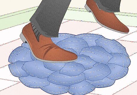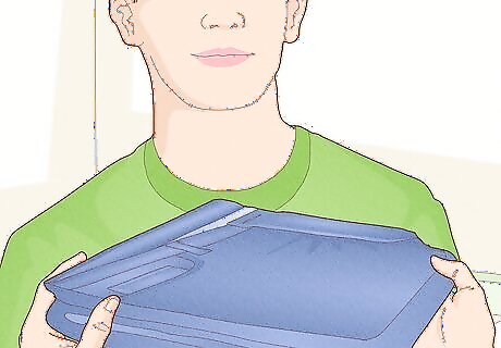 Make rags or placemats. Denim isn't terribly absorbent, so it's not great for towels. However, it is quite durable, so rags cut from it are great for the garage or kitchen. Making denim rags and mats is easy: just cut square sections of fabric from the jeans as needed. One simple way to get good-looking rags is to trace two straight, parallel lines across the front of one leg. Cut across both these lines to get a looped section of denim. Slice down one or both seams to get either one or two rags. To make pot holders, fold the rags to double- or triple-up the material, then stitch them shut.