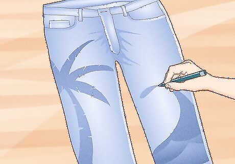 Re-decorate your jeans. Another way to get new life out of old jeans is to treat them as a canvas for your artistic abilities. Don't be afraid to get creative. You can make your worn-out jeans look amazing with a little imagination. Below are just a few things you may want to try: Drawings and doodles. Use a permanent marker or a fabric marker to get designs that stay in your jeans for more than one wash cycle. You may want to trace in pencil first to avoid mistakes. Rhinestones and studs. Use a sturdy fabric-safe glue for durability. Fancy buttons. Replace the button on your jeans with something more unique or decorative, like a sturdy flower-shaped button or a fabric-covered button in a fun pattern. Negative space designs. Trace shapes or designs on your jeans, then carefully cut them out with a fabric knife or set of scissors. Your skin will show through the hole, creating eye-catching contrast.