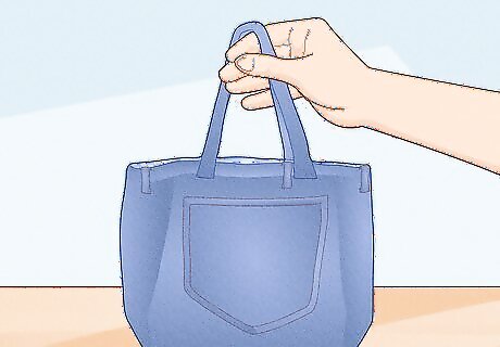 Make a tote bag. Jeans don't just need to be recycled into other types of clothing. Denim is fairly strong, so it's perfect for making sturdy tools and accessories as well. One easy project is to make a tote bag. This is perfect for carrying groceries and using as a purse replacement. To make a tote bag: Cut the legs off just below the crotch (as if you were making a very short pair of cutoffs). Cut the crotch seam and trim both sides to get something similar to a very short skirt. Stitch the bottom flaps of the "skirt" together to make the bottom of the bag. Cut two long, skinny strips of fabric from the leftover leg material. Stitch these to the top of the bag to make two handles.