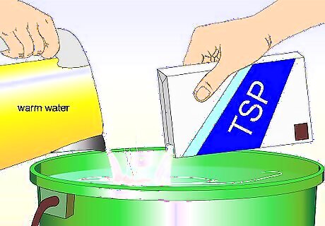 Mix together 1/4 cup of trisodium phosphate cleaner (TSP) with 2 gallons (7.5 liters) of warm water. TSP is a cleaning agent found in most hardware stores. It is a form of lye that is used to cut through grease and soot by causing them to become soapy in nature. TSP is often used to clean and remove grease and mildew from painted surfaces.