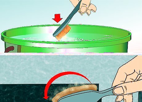 Dip the brush frequently into the solution to continue cutting through the soot.