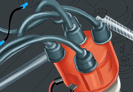 Unplug the wire that goes from the center of the coil to the distributor cap.