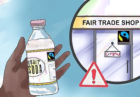 Look for labels on products, not retail shops. Retailers may include a fair-trade label on their doors or on the front page of their website for marketing reasons. However, these labels don't guarantee that most – or even any – of that retailer's products are certified fair trade. Keep in mind that stores may continue to display a fair trade lego even though they no longer sell fair trade products. Similarly, stores may express a commitment to fair trade without actually selling certified products. Even if a store does sell fair-trade products, a logo doesn't mean that everything that store sells is fair trade. You still must verify from the product's packaging that each particular item was produced under fair-trade standards.