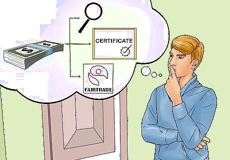 Contact the company that produces or distributes the product. If you have questions about how a product is produced or where it comes from and there's no label to assist you, the company may be able to provide some answers. Smaller companies and those that sell products produced by individual farmers or informal collectives may not have the funds or ability to have the products they sell fair-trade certified. Many such companies often have pages on their websites that describe how their products are made and the conditions of the workers who harvest and process them. You also may be able to find answers by calling the company's customer service number and asking about worker conditions. Ask what criteria the company uses to choose its suppliers, and how they verify working conditions and wages for the people who produce the products they sell. Producer organizations that trade directly with nonprofit organizations or other retail collectives may not be certified fair trade, but nevertheless achieve the same goals of finding solutions to poverty and empowering people in developing countries.