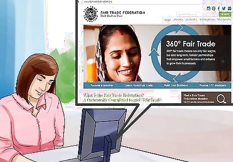 Find products and companies online. A number of nonprofit organizations as well as fair-trade labeling organizations have lists available online of products that are certified fair trade. Many fair-trade products distributed globally by smaller companies are only sold online. Websites such as fairtradefederation.org and transfairusa.org have lists of products and producers that are certified fair trade. If you're looking for fair-trade clothing, participating brands are more likely to be sold online than in brick-and-mortar stores. You also may be able to find better prices online if you buy directly from the company than if you purchase fair-trade products at a grocery store or other retail shop.