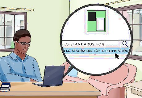 Research the organization's certification requirements. Each organization has particular guidelines that must be met for products to be certified, including labor law and pricing standards.There are two basic certification standards that are generally recognized, and typically other organizations have some version of one of those, or a combination of both. The international Fair Trade Labeling Organization (FLO) is the oldest fair-trade certification body. The organization developed a number of verifiable indicators of fair trade practices, and are the best-known and most common certifier of agricultural products worldwide. A number of Western countries such as Canada have their own fair trade initiatives which are affiliated with the FLO and use the same standards. The Institute for Market Ecology (IMO), headquartered in Switzerland, is also a well-known and well-respected certifier of fair-trade and organic products. The IMO aims to be more universally applicable than the FLO standards, which typically require producers to be large-scale co-ops or plantations with hired workers. IMO standards, in contrast, allow distributors to purchase products from individual farmers, informal producer groups, and smaller collectives.