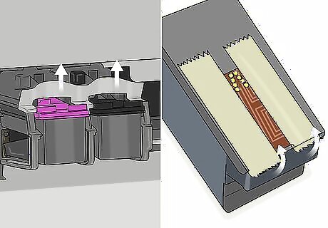 Take the cartridge out of the printer, and remove all adhesive tape put on the ink cartridge.