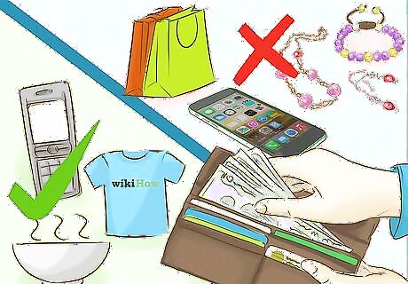 Spend only on essentials. If you don't have enough saved to sustain your current spending habits throughout retirement, you may need to get used to living on less. The more wasteful spending you can cut out of your budget early on, the more comfortable your lifestyle will be. In addition to not buying anything you don't need, you can also find ways to spend less on the everyday things you do need. Always comparison shop to make sure you're getting the best deal on everything, from groceries to insurance. Stop buying things out that you can make at home, such as coffee and meals. Don't buy things that you can borrow for free, like books. Look for other monthly expenses that you might be able to cut, like your cable subscription or a gym membership you never use.