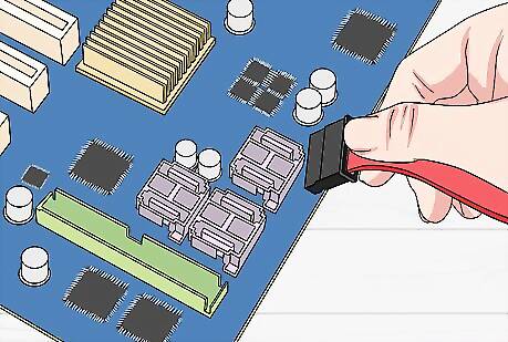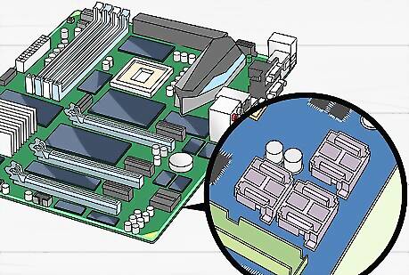 Locate an empty Sata port on the motherboard of the computer. After the computer case is open, prepare the installation of the hard drive by locating an empty port on the motherboard.