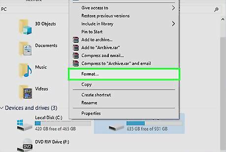Right click the hard drive and select the format option. This will begin the process of clearing all stored data from the drive and restoring it to factory settings.