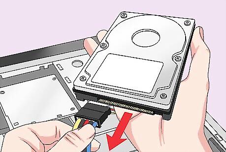 Remove the hard drive from the used computer. After the portion of the case is removed that harnesses the computer components, the Sata and power supply cables must be disconnected. After they are removed, the hard drive may physically be removed from the case.