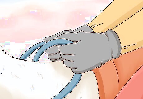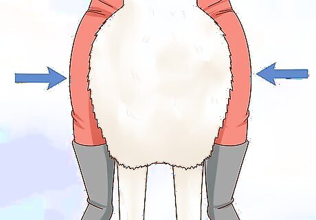 Stop the llama when you are ready to dismount. To stop it, squeeze your thighs against the llama's rib cage. This squeezing motion signals the llama to stop. This movement won't hurt the llama if done gently. Don't squeeze the llama too hard. Remember, you always want to treat the animal you are riding with respect. Don't ride without your hands on the llama, you could fall. Safety first!