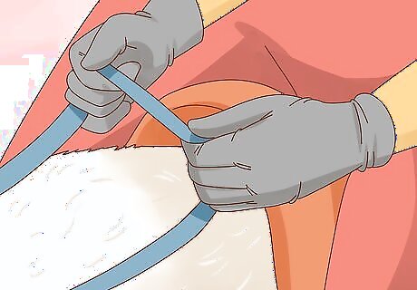 Use your reins to steer. You will need to pull them to the left or right to make the animal turn. Pull on the left rein firmly but gently to go left. Pull the right rein turn the llama right. Never pull the reins suddenly or too hard. This can cause the llama some discomfort.