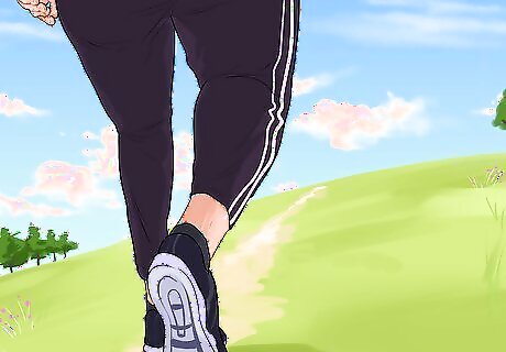 Charge hills. Find a low, steep hill. Or, if you live in a particularly mountainous area where there is no such thing as a “low” hill, mark a distance up the gradient to sprint for eight to twelve seconds. Sprint up the hill as fast as you can, walk or jog back down, and repeat. Exercise as many leg muscles as possible, all at once. Gradually increase the number of reps from workout to workout as each one becomes easier.