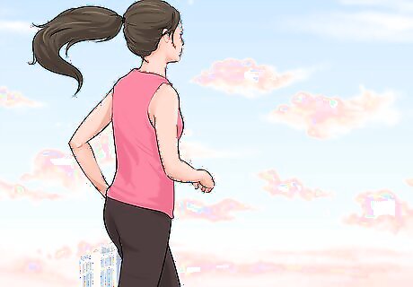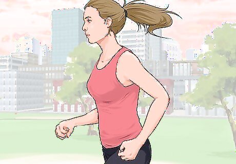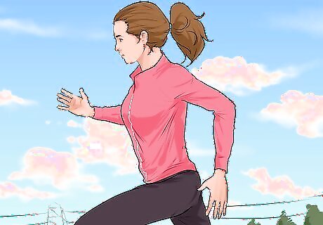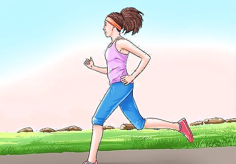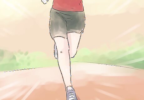 Run and walk in intervals. If you have little or no miles under your belt, alternate between running and walking in the beginning. Jog for one minute, then walk for four. Repeat three more times for a total workout of 20 minutes. As the one-minute jogging intervals become easier from one workout to the next, double them to two minutes each and decrease the walking intervals to three. Continue to increase the jogging and decrease the walking over time until you are comfortably running for a total 20-minute stretch.