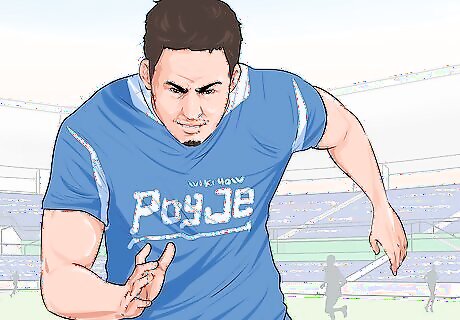 Work out on the track. Sprint at full-speed on a 100-meter straightaway. As always, start small. Do only a few reps at first, with a focus on form. As you become able to maintain maximum speed from start to finish in every rep, increase the number of reps. Also gradually increase the distance. Do 200-meter sprints, then 300, then 400. Each time you increase the distance, decrease your speed so you can grow accustomed to the longer distance, then gradually increase your pace, with the aim of sprinting at a consistent pace from beginning to end. Try combining various distances into your reps. For example, sprint for 400 meters, then jog for 100. After that 100-meter jog, sprint for 300, then jog for another 100. Sprint for 200 after that, then jog one 400-meter lap around the track to recuperate before repeating the rep.