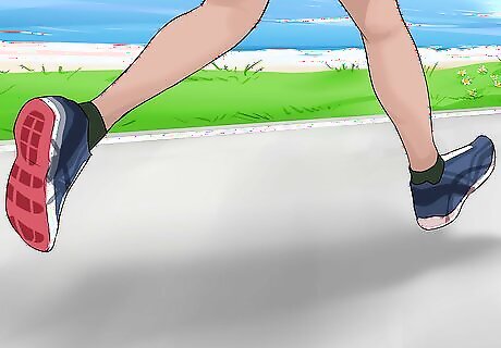 Keep your strides short. Avoid overextending your leg in front or in back of you. When you raise your knee ahead of you, keep that foot’s heel directly below it as you bring it down, so that your shin is perpendicular with the ground at a 90º angle when your foot lands. When you want to burst forward with a faster speed, focus on increasing the number of strides you take while maintaining this form, rather than reaching farther forward with your leading foot. The only time you should change the length of your stride is on hills. Shorten your stride to climb hills faster with more steps, and then open your legs up into a wider stride as you descend.