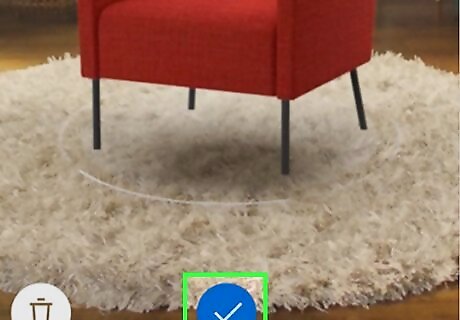 Tap the check mark. It’s at the bottom-center part of the screen. This places the item into the room. You can drag the item anywhere you wish. Add additional furniture pieces to the scene if you wish.