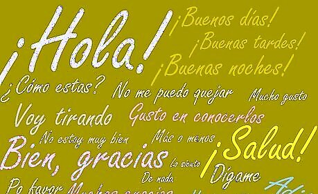 Learn the following conversational vocabulary: Hello or Hi - ¡Hola! Good Morning - ¡Buenos días! Good Afternoon - ¡Buenas tardes! also casual & friendly - ¡ Buenas ! Good Evening or Good Night - ¡Buenas noches! ( In Spain it also means means you're going to bed ) How are you (singular casual term)? - ¿Cómo estás? How are you (singular formal term)? - ¿Cómo está? How are you (plural both formal and casual term)?: ¿Como están? Fine, thanks - Bien, gracias. So, So - Más o menos Getting by - Voy tirando Can't complain- No me puedo quejar And you - ¿Y usted? (formal term) ¿Y tú? (casual term) ¿Y vos? (some latin american countries, like Guatemala and Argentina; very casual term) Not very well - No estoy muy bien / No estoy tan bien / No tan bien (I'm not very well) I'm sorry. - Lo siento, perdón, disculpa (casual) o disculpe (formal). Good-bye- Adiós See you later! - ¡Hasta luego! (or) ¡Hasta la vista! I'll be seeing you... - Nos vemos... See you tomorrow - Hasta mañana... (Nos vemos mañana is ok, too) Please - Por favor Thanks very much - Muchas gracias You're welcome - De nada / No hay de qué Nice to meet you - Formal Singular Gusto en conocerlo(a); Mucho gusto (more common in Mexico & South America). Nice to meet you - Casual Singular Gusto en conocerte. Nice to meet you - Plural both formal and casual: Gusto en conocerlos. Nice to meet you - Flowery to impress a lady: Un placer (Literally "It's a pleasure.") or Encantado - same general meaning. Bless you (sneeze or to your health) or God bless you - ¡Salud! (in Guatemala: ¡Jesús! but ¡Salud! is more common) Talk to me (to answer the phone) - Digáme