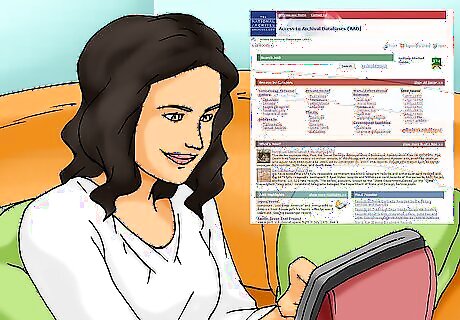 Start your research with electronic databases and microfilm. Unless you know exactly what original documents you want (such as if you've already been researching online), the National Archives recommends you do preliminary work with databases and microfilm first. Research is primarily self-guided, although Archives staff and volunteers are happy to help if you run into problems.