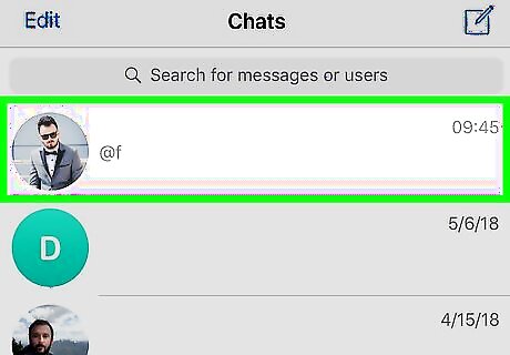 Tap the Chats tab. It’s the second icon at the bottom of the screen. If you’re already on this tab, skip to the next step.