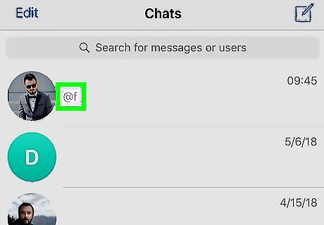 Scroll down to find an “@” on a chat. Each conversation that mentions you has a blue “@” on its rightmost edge. If there’s more than one mention, the number of mentions appears beside it.