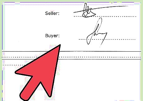Close the deal. If the buyer is satisfied, negotiate the selling price. Remind the buyer of your asking price and see if they will agree to it but also keep your lowest price in mind. If the buyer cannot come close to your lowest price, or you have other buyers in the picture and would prefer to hold out for your asking price, feel free to decline and move on. Otherwise, if you’re satisfied, be prepared to sell on the spot and complete the paperwork. Depending on where you live, this may involve signing over the title and completing a Bill of Sale. You will need to judge what your options are when negotiating. If you have time on your side, are in touch with other buyers, and your vehicle is in high demand, you will have considerably more latitude than if you need to get rid of your vehicle urgently and have not had many calls. Don’t hand over the keys until all the paperwork is complete and you have copies of everything.