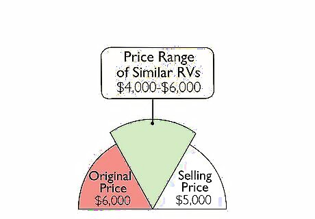 Decide on a price range that's reasonable to sell your RV. It’s likely that a potential buyer might try to haggle the price down when they’re looking at your RV, so be prepared to get a little less than fair market value. After calculating a fair price, add and subtract a little bit (a few hundred dollars, for example) to come up with an acceptable range. For example, if the fair market value of your RV is $5,000, and you'd like to sell it for that, your range for an acceptable offer might be anywhere from $4,500 to $5,500.