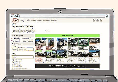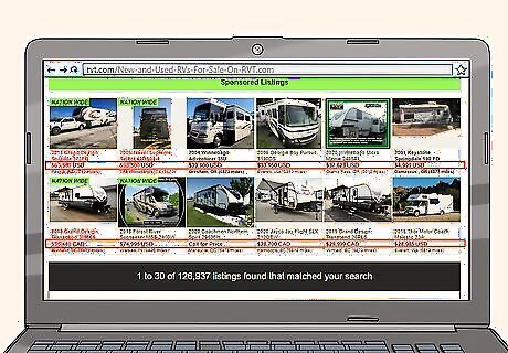 Compare prices online to see what others are selling. Go to specific websites that are used to compare the prices of RVs, or do a generic online search by typing the make, model, and year of your RV into a search engine to see what it’s currently worth. Write down the different prices, as well as what each RV offers, so you’ll be able to come up with a more accurate price for your own. The National Automobile Dealers Association is a good source for figuring out how much your RV might be worth. Look on Craigslist to see how other sellers are pricing their RVs.