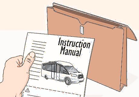 Gather all of the paperwork together for the future owners. Pull together all of the manuals that go to the appliances and accessories in the RV, as well as the user manual for the actual RV. Place these things with the title to the RV and any other essential paperwork that came with the RV when you bought it so that everything is in one place for the new buyer. It’s a good idea to make a list of all the maintenance that the RV had done while you owned it, putting this list with the other paperwork. Store the paperwork in a protective file folder to make sure it doesn’t get lost or damaged.