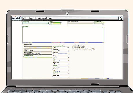 Post an ad on Craigslist selling your RV. Visit the Craigslist website and create an ad for your RV. Post several pictures of the exterior and interior, and list the amenities the RV comes with. Adding as much information about the RV to your post as possible will make it easier for potential buyers to get an accurate idea of what your RV is like. Set your location when you post the ad so people know which area they’ll need to visit to see the RV in person. Make sure you include the price in your post.