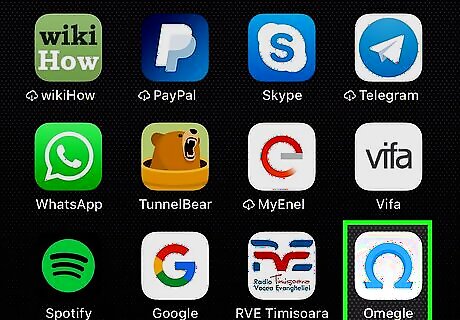 Tap Chat. Omegle will search for people you can chat with. You can also open a previous chat by tapping the Messages icon. The Messages icon is in the upper right corner of the screen and looks like three white dots aligned horizontally inside a blue voice bubble. Tapping it brings you to a screen that displays your past chat history in chronological order.