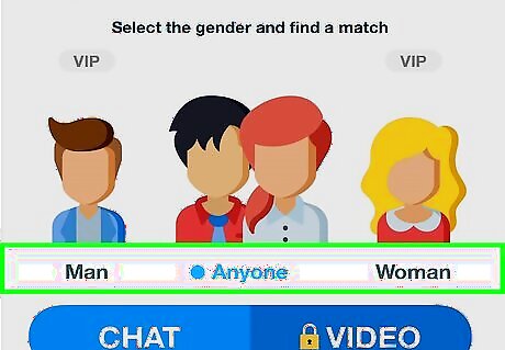 Tap Man, Woman or Anyone. These options determine who Omegle will match you with for conversation. You will need a paid VIP account to choose to match specifically with men or women.