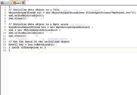 When you serialize an object in Java, you convert the data into byte streams that then later convert back into the copy of the original data. If this sounds confusing, think of serialization in the following terms. You're working on a document and then save it to your hard drive. You are, in manner of speaking, serializing the data so you can retrieve that copy later on. Serialization makes the transfer of data on networks much easier and more efficient.It's important that you understand the basics of Java before serializing an object. If you've used programming languages such as Pascal and older versions of C, you'll know that without object serialization, a programmer has to create a separate I/O text file to store and load data. Object serialization in Java bypasses creating this text file to store data, saving time and programming costs. The following article contains the steps to serialize an object in Java. The sample code in this article is used courtesy of The Java Developers Almanac 1.4.