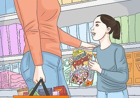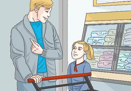 Highlight good behaviors. Children crave attention from their caregivers. By giving them positive attention when they do the things you have asked, you fulfill that need. Also, let them hear you brag about their good behavior to your co-parent and to others. This helps to build your relationship with the child, and to reinforce the behaviors that you like to see. You could reinforce good behaviors by saying things like “I was so proud that you stayed close enough to reach the cart through the whole trip. Thank you for doing what we talked about.”