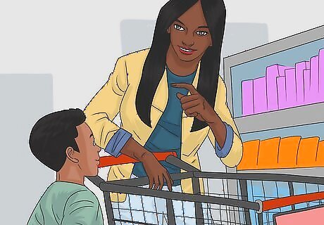 Give your child some control. Children are not always capable of making decisions for themselves, so parents generally do this for them. That in mind, children also need to feel like they get to make some on their own choices. If you are not creating opportunities for them to do this when you go out, it is not realistic to expect their cooperation with your decisions. Plan for something on the trip to be left up to your child’s discretion to buy for the reasonable behavior you discussed with them. Be sure to discuss this before you leave for the trip to get them excited and give them a reason to exercise the desired behavior. For example, if you decide that you are going to the grocery store to get milk and cereal, you could let your child pick the kind of cereal they want to have. You can even limit some choices to let your child pick between things that you present them. In the case of cereal, you could offer to let them choose Cheerios or Raisin Bran if you wanted to avoid chocolate or fruity cereals that are packed with sugar.
