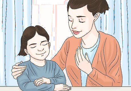 Discuss ways to meet your expectations. Once you tell a child exactly what you want them to do, you can give them strategies to succeed. Come up with a way that the child can gauge their own behavior to limit the amount of times that you have to intervene. Being told that they are not meeting your expectations repeatedly will frustrate children and make it even harder for them to focus on the goals that you gave them. For example, if you have set the expectation that your child will alongside you in the store, you can tell them something like “Your arm should always be able to touch me or the cart. If you can’t reach me or the cart, then you are too far away and should come closer.” This lets the child gauge their distance in a way that they can understand instead of an abstract “Stay beside me.” You can also roleplay with your child before going somewhere. This way, they get practice meeting your expectations and feel confident when they are put in a public situation. For example, you could practice things like saying “thank you” when someone gives them something.