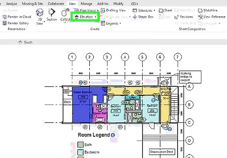 Select an elevation view to add levels to. You'll see a list of all your different views in a panel on the left side of the screen.