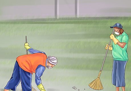 Clear any debris in the area. Walk through the area you’ve chosen for your arena. Look for large rocks, debris, or any unevenness in the footing that could affect your measurement of the area or cause a horse to trip or spook.