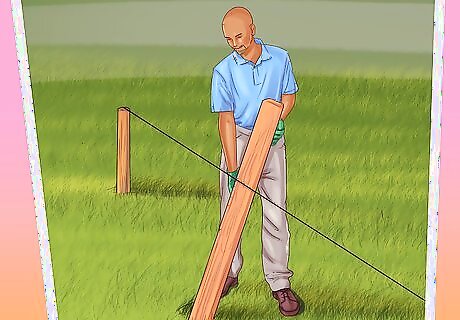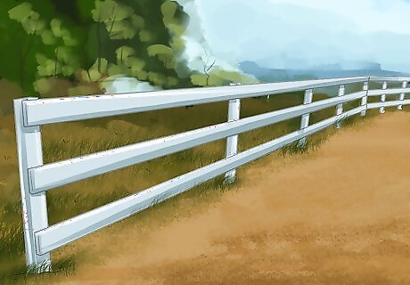 Place the fencing along the lines you’ve measured. Make sure that the fencing is straight and lines up with the string you’ve tied around the stakes. Make sure that there is a gate or an opening so that horses can get in and out of the arena. This gate is typically on one (or sometimes both) of the short sides.