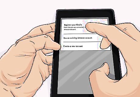 Enter your Amazon account information or create an account. You’ll need an Amazon account to continue the Fire HD setup process, so if you don’t have one tap Create Account toward the bottom of the screen and create an account. If you already have an Amazon account, enter the email associated with it and enter your account password. If your Kindle is not registered, you won’t be able to access, purchase, or receive items through Amazon’s Kindle store. Your Amazon account will also link to your preferred source of payment to buy content from Amazon, so you will need to enter credit card information for your Amazon account.