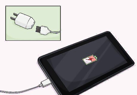 Charge the battery of your Kindle completely. Your Kindle should have come with a USB cable with which you can connect your new device to a computer or a USB charging port to start charging your battery. Power adapters for your Kindle are sold separately, but will charge your Fire HD more quickly than a USB charger. Charge your Fire HD by: Connecting your USB cable into your kindle. Plugging the USB cable into a power adapter or USB port. Waiting until your Kindle notifies you it is fully charged on its main screen, or the orange charging light on the bottom of your device turns green, signifying a full charge.