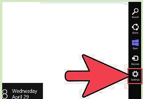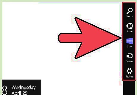 Open the Charms bar by swiping in from the right-side of the screen. If you're using a mouse, move the cursor to the upper-right corner of the screen to open the Charms bar.