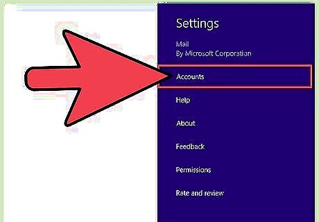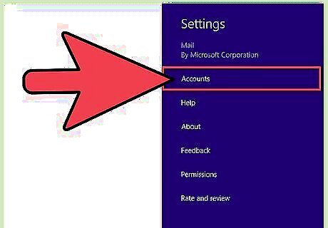 Tap or click "Accounts". This will show the accounts that are currently connected to the Mail app. If you use a Microsoft account to sign into Windows 8, your Microsoft account email will already be configured in the Mail app. You can't remove this account from the Mail app unless you change your computer's login settings.
