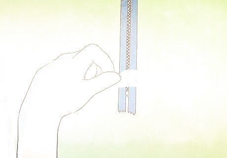 Center the zipper teeth over the machine-basted portion of the seam. Hold the zipper in place with hand basting or transparent tape.