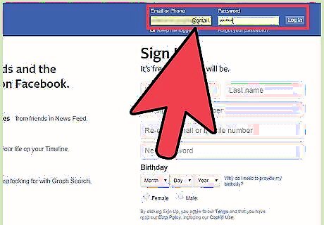 Log into your Facebook account. Visit the homepage of Facebook. After being directed to it, enter your registered email address and password into the login fields at the top right, and click “Log in” to continue.