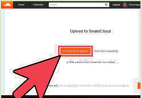 Upload an mp3 file. Once after logging in, go to the top right of your SoundCloud homepage, and click the “Upload” button. From the options that appear, select “Choose file to upload.” A file explorer will appear; use it to locate the mp3 file on your computer. Once you've located the file, double-click on it. Soon after selecting the file, a prompt will pop up showing the uploaded content information like Title, Tags, Description, and the upload progress bar. While waiting for the upload to finish, you can always edit the details. When done, click the “Save” button.
