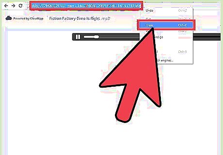 Copy the mp3 link. After you've renamed the mp3 file, click on it in the Recent Drops list. A new tab will open with the audio playing in it. Copy the URL of the page by right-clicking on the URL and selecting “Copy” from the context menu that appears.