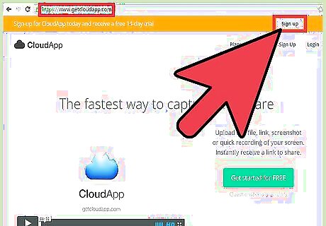 Sign up for CloudApp. CloudApp provides you with a quick way to share screen recordings, mp3 files, images, and all type of media content, making sharing mp3 files on Facebook easy. Open a new browser tab, type “CloudApp” in the address bar, and press Enter to search for it. CloudApp should appear as the first in the list. Click it, and you will be redirected to the home page of CloudApp. Click “Sign up” at the top right of the page, and a prompt will pop up asking you for details required to log in. You will be given two options; you can either log in directly using any email ID other than a Google account (like Yahoo, Hotmail, etc.) or log in with Google+. Choose the option you prefer, and click the blue “Sign Up” button.